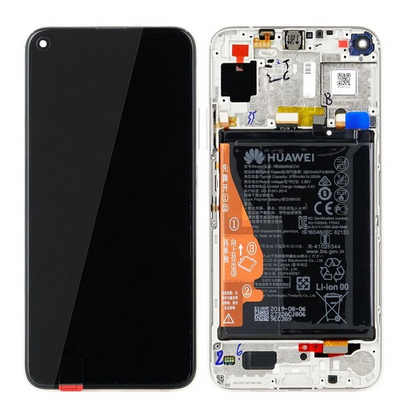 Teszt Huawei Honor 20 , Nova 5T Előlap keret+LCD Kijelző+Érintőüveg, fehér (02352TPC) Service Pack